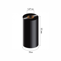 Риббон (красящая лента) 57мм х 74м WAX(2824, 57 мм) используется как расходный материал для термотрансферной печати полипропиленовых этикеток, он сохраняет качество печати под открытым небом или при воздействии активных веществ. Печатающая головка принтера нагревается и переносит слой краски с риббона на этикетки. Риббон (красящая лента) используется вместе с рулоном этикеток в термотрансферном принтере. В рулоне 74 метра риббона шириной 57 мм, диаметр втулки - 12 мм (1/2″), ширина 57 мм. Втулка изготовлена из картона или пластика.